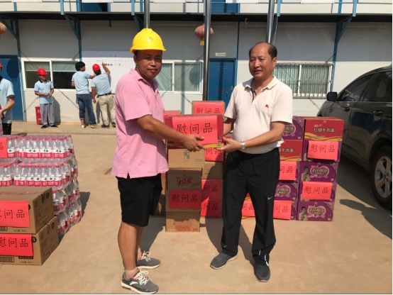 公司領(lǐng)導(dǎo)每到一處,都對(duì)工作人員表示慰問(wèn),把物資送到他們手上,對(duì)他們不畏高溫、堅(jiān)守崗位的辛勤工作表示感謝,并叮囑他們一定要把安全放在第一位,在安全的情況下,保質(zhì)保量完成工期節(jié)點(diǎn)目標(biāo)。同時(shí)要求合理安排工作時(shí)間,注重勞逸結(jié)合,并進(jìn)一步做好高溫防護(hù)工作,積極應(yīng)對(duì)高溫天氣給工作帶來(lái)的困難與不便,確保各項(xiàng)施工工作有條不紊地進(jìn)行。