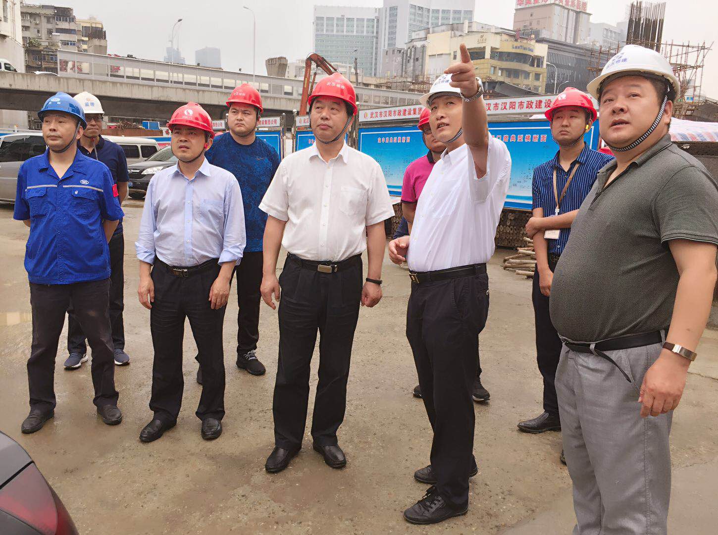 在寶豐路現(xiàn)場,金董事長詳細查看了寶豐路高架四層立交的進展情況,并就工程的下步工作提出了具體要求。金總在檢查中指出,漢江大道是軍運會配套項目,交通意義重大,一定要嚴格按照施工方案加快推進工程建設(shè),并同相關(guān)單位做好溝通協(xié)調(diào)工作,確保按期完工通車。