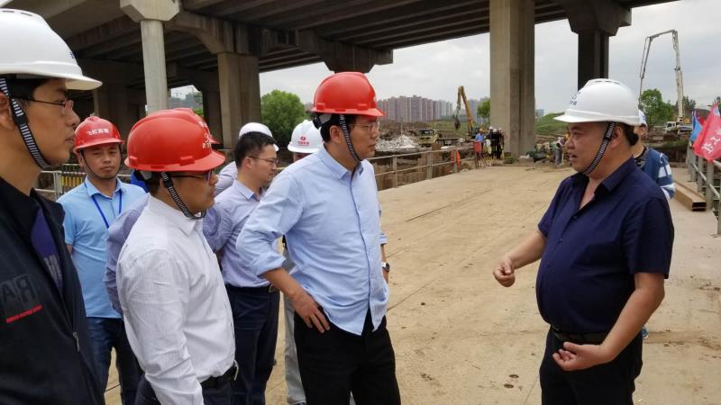 城投公司項(xiàng)目部部長陳勇、總工辦主任吳斌,橋建集團(tuán)總經(jīng)理艾詩明、副總經(jīng)理程金華陪同檢查。