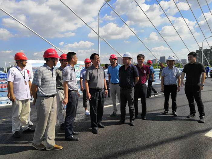 8月30日下午,市城投集團公司董事長金國發、副總經理盛華一行來到漢江大道項目現場,檢查工程通車前的準備工作情況。