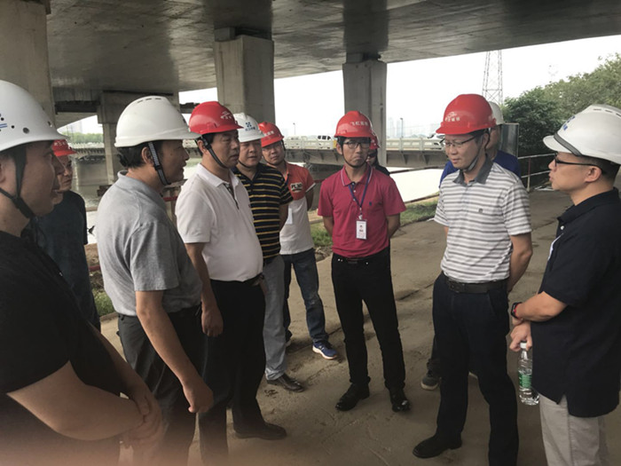 市城投集團公司副總經理盛華,項目部相關負責同志,橋建集團董事長朱明剛,總工程師鄧文輝等陪同調研。