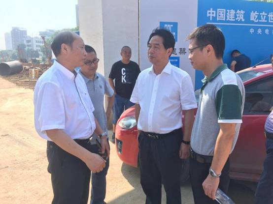 7月11日上午,市城投集團公司董事長金國發、副總經理盛華一行來到楊泗港青菱段、珞獅南路改造及丁字橋南路項目現場檢查工程建設情況。