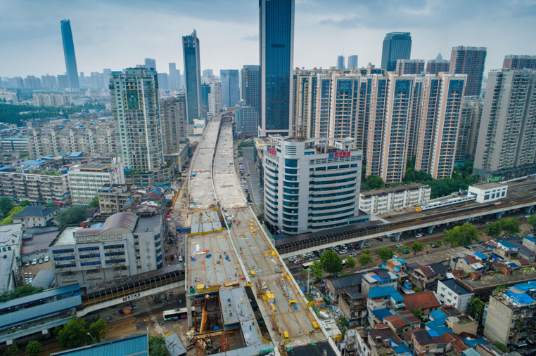 與此同時,在硚口路、寶豐路與解放大道交會處,與高架橋跨輕軌段相連的寶硚四層立交主體結構也于9日完工,立交雛形已現。待立交匝道全部建成后,有望解決建設大道、解放大道及漢陽來往車輛的擁堵問題。