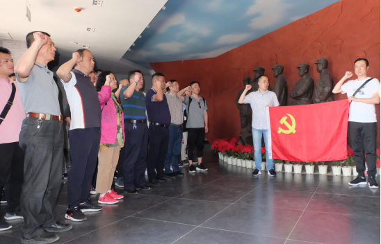 參觀新四軍第五師歷史陳列館后,集團公司總經理、黨委副書記艾詩明帶領全體黨員在革命群雕面前重溫入黨誓詞。隨后,大家繼續在戶外參觀了李先念、陳少敏舊居、參謀部、槍械所、醫務室、印刷廠、后勤部等紅色遺址。