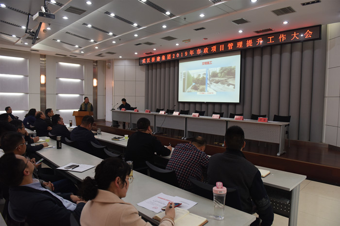為進一步提升市政項目管理水平,打造市政精品工程,3月29日下午,橋建集團組織所有市政項目參建單位召開2019年市政項目管理提升工作大會。橋建集團領導班子、公司市政相關部門、基建公司全員、全體市政項目施工單位項目經理、監理單位總監參加了會議。公司副總經理程金華主持會議。