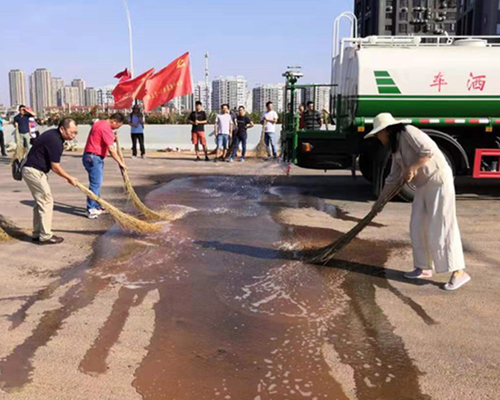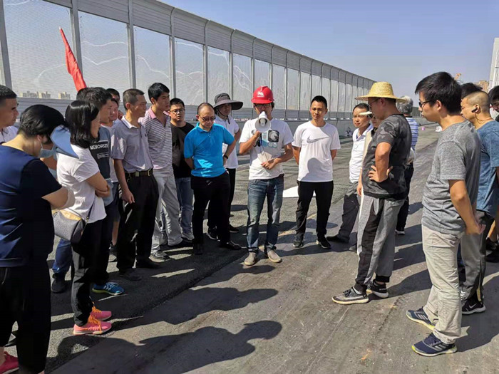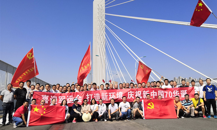 楊泗港快速通道青菱段項目通車在即,10月1日上午,橋建集團組織廣大干部職工赴楊泗港快速通道青菱段開展現場收尾清潔暨觀摩青菱段跨鐵路斜拉橋橋面ECO混凝土+ SMA13瀝青攤鋪活動,并在項目現場為祖國母親七十華誕送上美好的祝福。