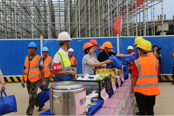 7月23日,武漢迎來大暑天氣。市城建局、市總工會夏季送清涼慰問來楊泗港快速通道青菱段(八坦立交-丁字橋路)工程現(xiàn)場,為一線建設(shè)者送去防暑降溫物質(zhì)和一場文化大餐。