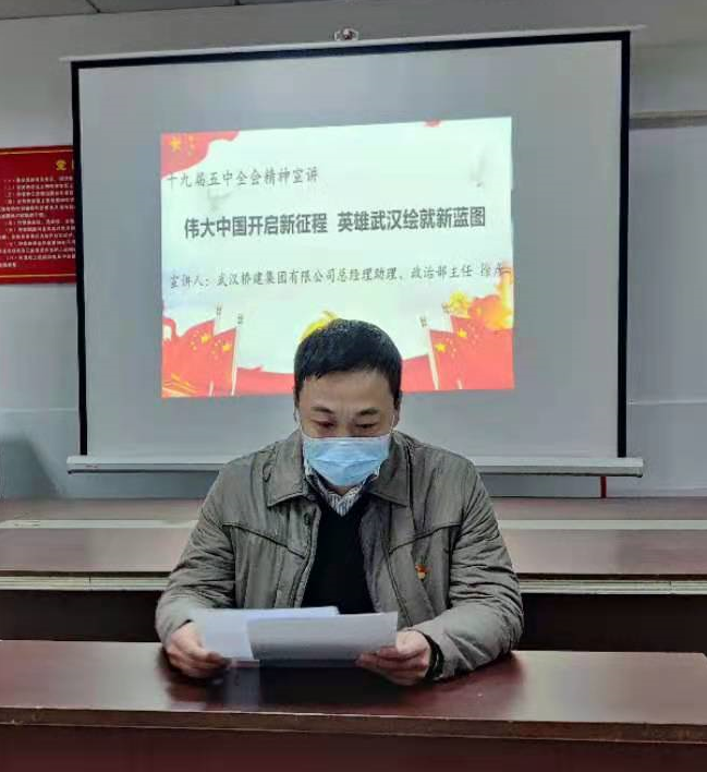活動現(xiàn)場,徐彥作了《偉大中國開啟新征程 英雄武漢繪就新藍圖》的報告,對黨的十九屆五中全會精神進行宣講。徐彥就深刻領(lǐng)會十九屆五中全會精神重大意義,把握全會精神實質(zhì),踐行全會精神,努力建設(shè)現(xiàn)代化大武漢進行了全面的解讀,并對十九屆五中全會審議通過的《中共中央關(guān)于制定國民經(jīng)濟和社會發(fā)展第十四個五年規(guī)劃和二〇三五年遠景目標的建議》臺前幕后進行了說明,同時結(jié)合武漢市的“十四五”規(guī)劃,對武漢未來發(fā)展趨勢進行了深刻的剖析,從而進一步堅定廣大居民全面建設(shè)社會主義現(xiàn)代化國家的信心和建設(shè)現(xiàn)代化大武漢的決心,贏得居民的陣陣掌聲。