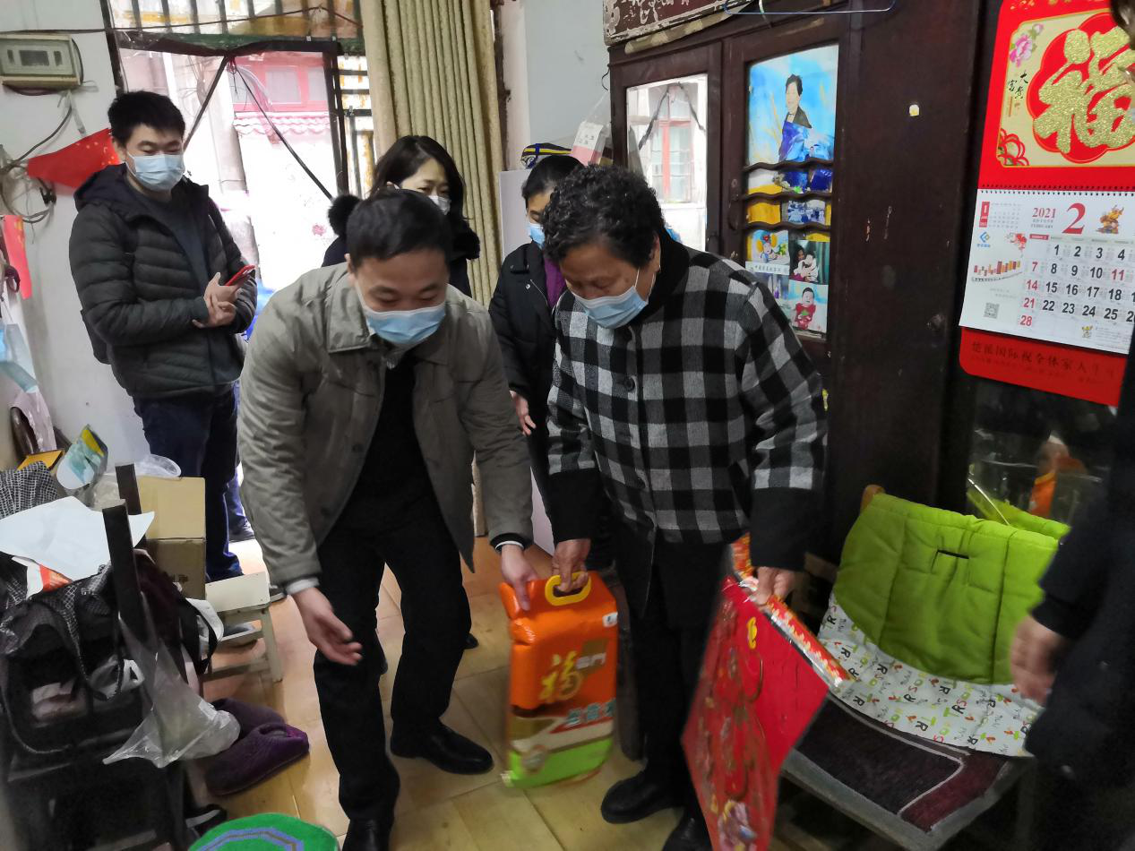 (向社區(qū)困難群眾送去生活物資)