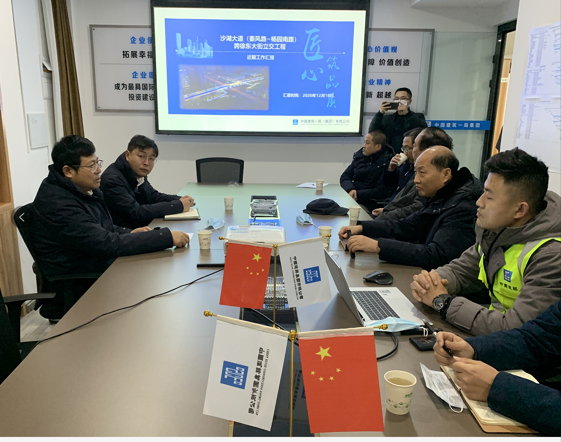 2020年12月18日上午,市城投集團公司紀委書記榮鞏在我公司董事長朱明剛的陪同下實地調研沙湖大道跨徐東大街立交工程。