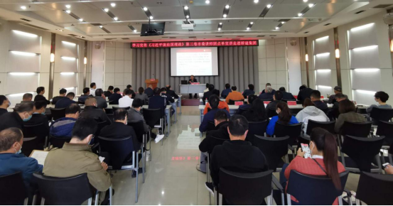 10月23日,集團公司黨委理論學習中心組(擴大)舉辦《習近平談治國理政》第三卷專題宣講報告會,邀請市委講師團成員、江漢大學馬克思主義學院院長趙興教授到場宣講。集團公司領導班子成員、本部中層干部、全體黨員及所屬單位領導班子成員共70余人參加活動。這次活動也是集團公司與武昌區白沙洲街八鋪街社區黨建共建活動的一項重要內容,八鋪街社區黨委副書記沈嬌也來到現場,參加宣講活動。