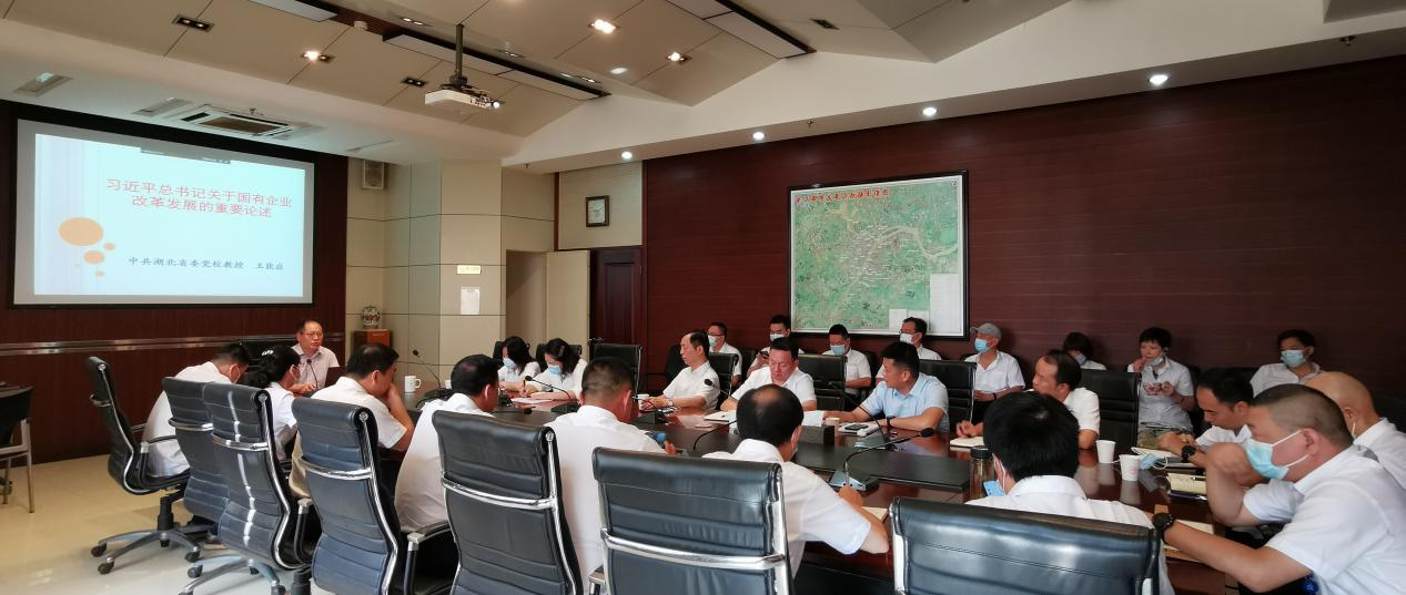 為深入貫徹習近平總書記關于國資國企改革發展的重要論述,認真落實中央改革部署,按照上級主管部門相關工作安排,9月3日上午,集團公司舉辦專題報告會,學習習近平總書記關于國有企業改革發展和黨的建設重要論述。報告會邀請中共湖北省委黨校(湖北省行政學院)經濟學與經濟管理教研部主任、教授王能應作專題報告。集團公司領導、中層干部、所屬單位黨政主要負責同志,共40余人參加。