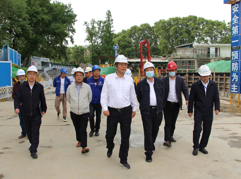 李董事長查看了兩湖隧道東湖段省博工作井與馬廟湖工作井的建設(shè)情況以及安全文明施工情況。李董事長指出,兩湖隧道東湖段建設(shè)意義重大,地理位置特殊,各參建單位要提高站位,做好安全文明施工及精細(xì)化管理工作。李董事長要求,一是要貫徹落實(shí)市委、市政府、市城建局、市城管委、市水務(wù)局下發(fā)的關(guān)于國家文明城市復(fù)審及建設(shè)工地安全文明施工整治的一系列文件精神,推進(jìn)精細(xì)化管理建設(shè),打造樣板工地;二是抓好現(xiàn)場(chǎng)門禁管理與防疫工作,嚴(yán)禁外來人員隨意進(jìn)出工地;三是做好現(xiàn)場(chǎng)防漬防汛工作,完善現(xiàn)場(chǎng)排水系統(tǒng);四是加強(qiáng)現(xiàn)場(chǎng)用電管理及圍堰監(jiān)測(cè)工作,確保現(xiàn)場(chǎng)施工安全;五是做好現(xiàn)場(chǎng)安全文明施工,高標(biāo)準(zhǔn)實(shí)施現(xiàn)場(chǎng)降噪、降塵、封閉打圍、裸土覆蓋等措施;六是按照市城管局、交管局相關(guān)要求落實(shí)占道挖掘及渣土外運(yùn)各項(xiàng)要求;七是做好現(xiàn)場(chǎng)生活區(qū)的衛(wèi)生保潔、垃圾分類等工作,優(yōu)化工地環(huán)境