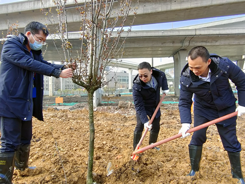 今年3月12日是我國第43個植樹節,也是開展全民義務植樹活動第40周年。在植樹現場,大家熱情高漲、干勁十足,分工協作、相互配合,有的兩兩一道,有的三五搭檔,揮鍬鏟土、扶苗培土、踩實新土、提桶澆水……忙得熱火朝天。50棵小樹苗傲然挺立,在陽光下,風姿綽約,生機勃勃。植樹后,大家紛紛在“微心愿”的卡片上寫下寄語祝福,呼吁更多的人愛綠護綠。此次活動,既盡了公民植樹義務,也進一步增強了職工活力和凝聚力。