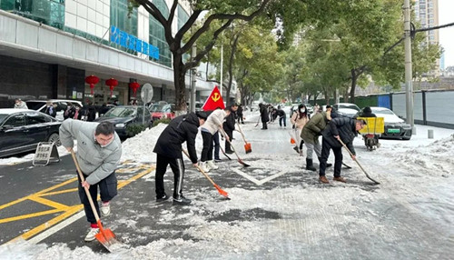 和三環線上全機械化作戰不同,這次我們是純手工作業。2月23日上午,公司30余名黨員和職工對公司大樓們前道路上的冰雪進行清理。堆積了一天一夜的凍雨和冰粒,被來往的車輛碾壓后,牢牢凍結在路面上,清理難度較大。大家掄起鐵鍬,有的敲有的斫,有的鏟有的刮,各顯神通,干勁十足。經過近一個小時的努力,道路恢復了瀝青本色,為周邊市民出行提供了安全和便利。 橋建集團黨委先后3次組織100余人次對辦公場所區域道路進行掃雪除冰,切實把防范應對低溫雨雪冰凍災害作為學習貫徹習近平新時代中國特色社會主義思想主題教育的生動實踐,以實際行動詮釋著國企擔當。