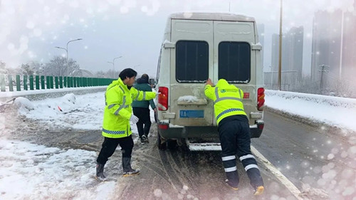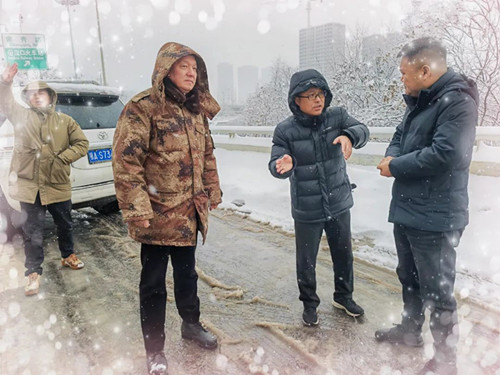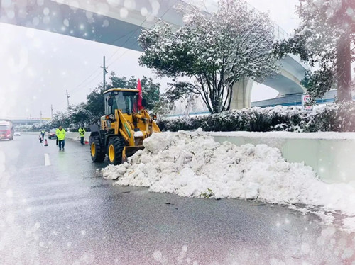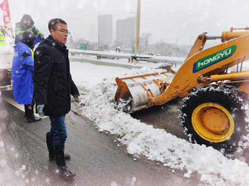 為了打好融雪攻堅戰(zhàn),公司領(lǐng)導(dǎo)干部帶頭沖鋒一線,晝夜奮戰(zhàn),既當(dāng)好動員部署的“指揮官”,又當(dāng)好抓落實的“戰(zhàn)斗員”。自2月3日凌晨武漢市低溫雨雪冰凍災(zāi)害應(yīng)急響應(yīng)級別由Ⅳ級提升至Ⅲ級以來,公司主要領(lǐng)導(dǎo)、分管領(lǐng)導(dǎo)和同志們一道始終在項目現(xiàn)場日夜鏖戰(zhàn),身體力行,始終沖鋒在融雪抗冰保暢的最前端、第一線,現(xiàn)場查看值班值守、人員配置及抗冰物資儲備準(zhǔn)備情況,督促撒布機、鏟車、人員全力投入融雪除冰工作,連續(xù)四個晚上未回家,腳上的鞋襪被雪浸濕也顧不上回家換;公司負(fù)責(zé)的路段現(xiàn)場,到處都是橋建人浴“雪”奮戰(zhàn)忙碌的身影,融雪除冰工作群里的消息,從白天一直閃爍到天亮;天寒地凍,他們頂風(fēng)冒雪奮戰(zhàn)最前沿,面頰被凍得通紅,眉毛、睫毛上結(jié)滿了冰晶也沒有一句怨言,以強烈的責(zé)任擔(dān)當(dāng)和行動自覺踐行黨員干部沖鋒在前、戰(zhàn)斗在前的精神風(fēng)貌。