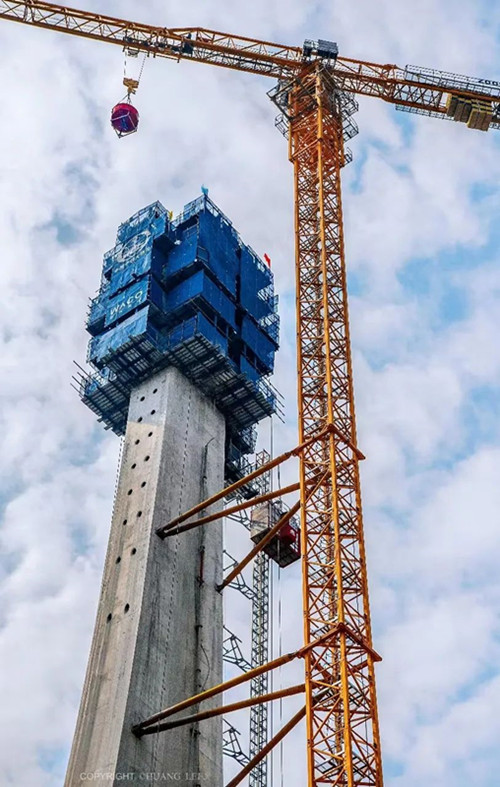 ▲主塔封頂澆筑施工現場 攝影 黃蕾