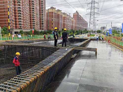 正值國慶佳節,二七過江通道(解放大道-沿江大道段)工程仍馬不停蹄的有序推進,項目部優化資源配置,機器不停,工人不休,進度不減,鋼筋、模板、混凝土等施工作業緊張有序,支撐拆除架體搭設,隔墻鋼筋綁扎有條不紊,全體參建人員用默默堅守和奮力工作為祖國母親慶生。