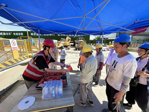 “高溫天氣對現場工作人員來說是種考驗,要在保障他們人身安全的前提下搶進度。”二七過江通道工程現場業主代表張飛說,目前已將施工人員作業時間調整為“早出晚歸”模式,通過“干兩頭、歇中間”錯時施工的方式避開正午高溫時間段,項目現場備有西瓜和涼茶等清涼解暑飲品,還備齊了藿香正氣液、清涼油等防暑降溫藥品,生活區配備了空調,在緩解高溫作業壓力的同時,也為項目正常推進創造了條件。