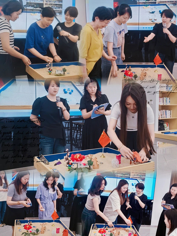 在雷老師的指導下,每名女職工自由挑選沙具,逐個擺放到沙盤中心儀的位置,共同構建了一個童話般的世界。在女職工們共同創作沙盤的過程中,大家相互協作、相互理解,并與現實生活結合,深入開展交流互動,使大家更直接、更真實地了解彼此,促進人際關系發展,獲得心靈成長。