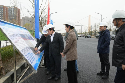 湯大鋒一行首先實地考察了右岸大道南段重點工程項目現(xiàn)場,了解工程建設(shè)推進情況;參觀了“清風橋建‘廉課堂’”線下展示——“廉箴卷”(互動投影書),體驗特色廉潔教育新形式。