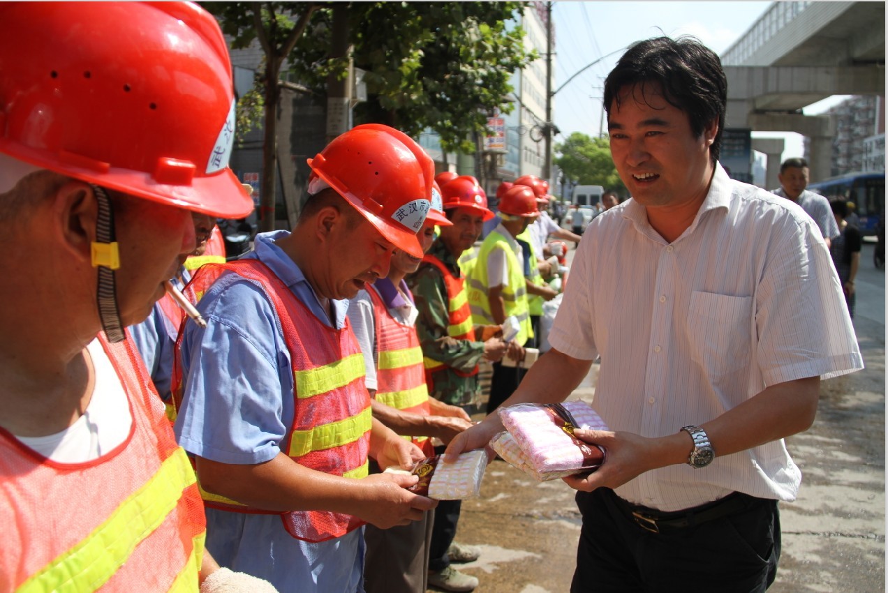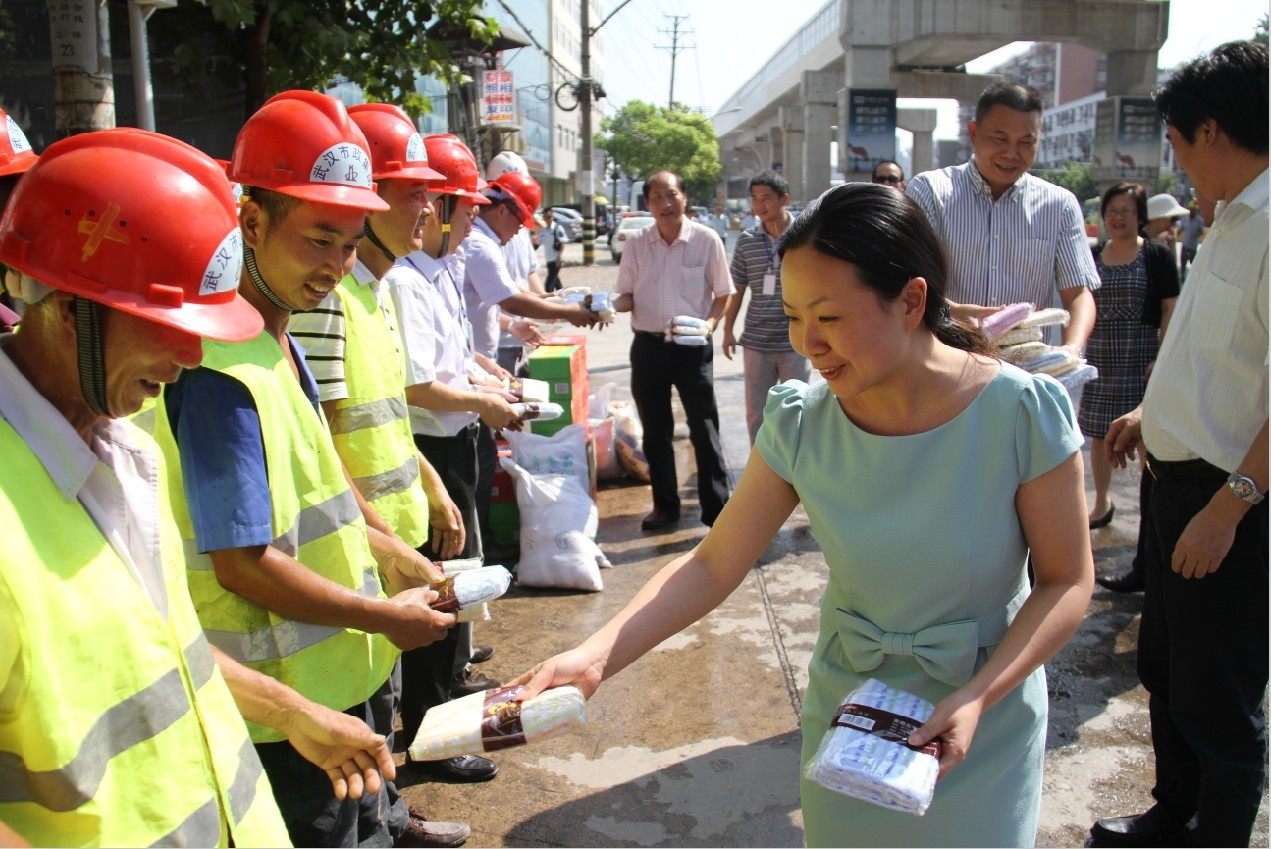8月1日下午,城投集團(tuán)董事長雷德超、副總經(jīng)理余靖玲一行來到我公司代建的解放大道下延線項(xiàng)目施工現(xiàn)場,慰問奮戰(zhàn)在高溫下的一線員工,并送去了慰問品。