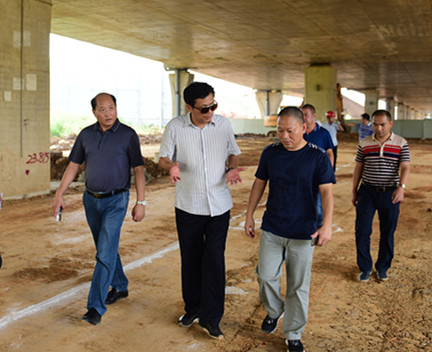 8月23日上午,市城投集團公司總經理李兵來到我公司負責代建的濱江大道和楊泗港快速通道四新段工程現場,實地檢查工程建設情況。