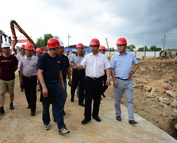 7月18日、19日,市城投集團公司董事長金國發連續兩日巡查重點工程建設情況。金董事長在公司總經理朱明剛的陪同下巡查了我公司負責代建的三環南、雄楚大街、濱江大道、解放大道下延線、龍角湖泵站等項目,檢查各項目汛期的生產恢復情況。